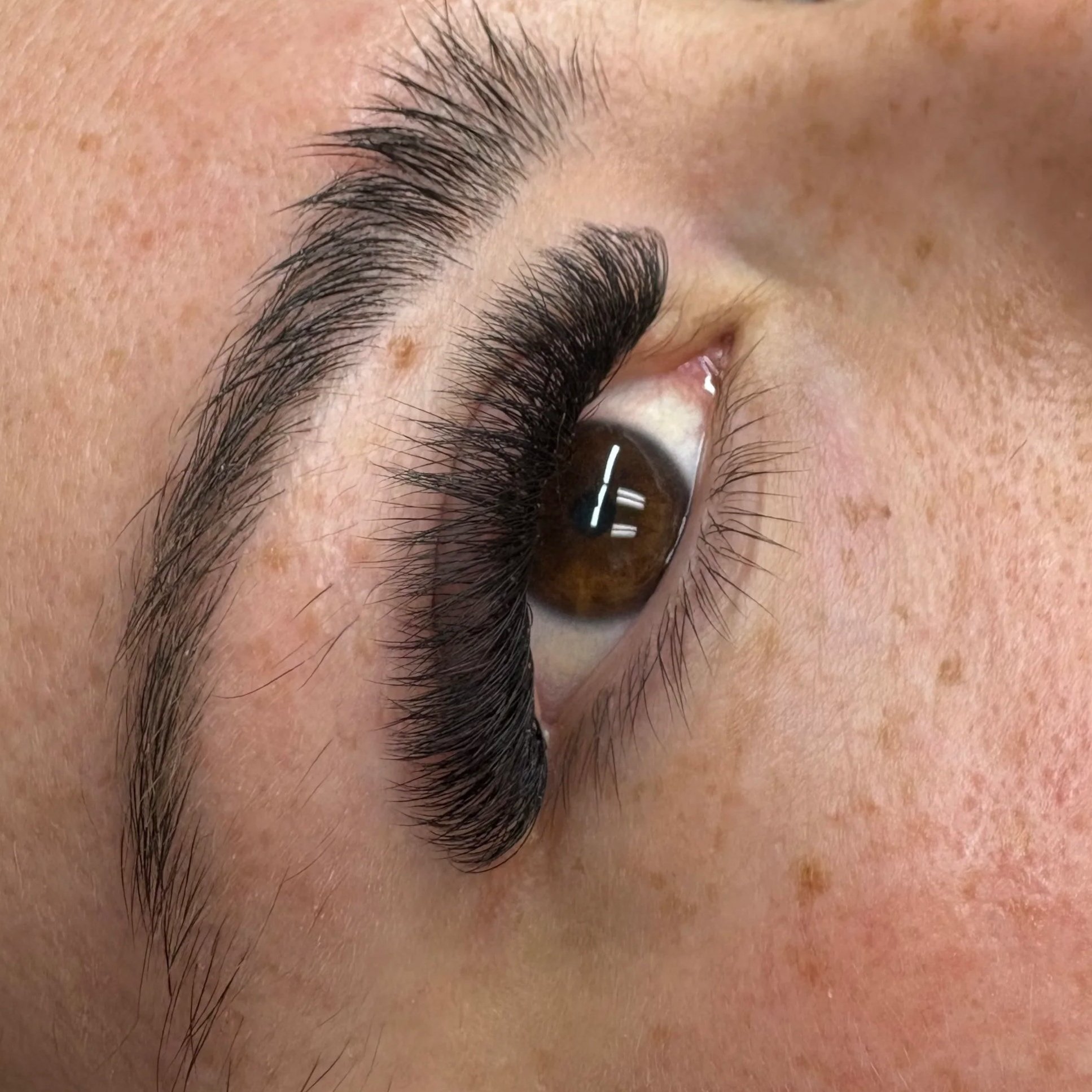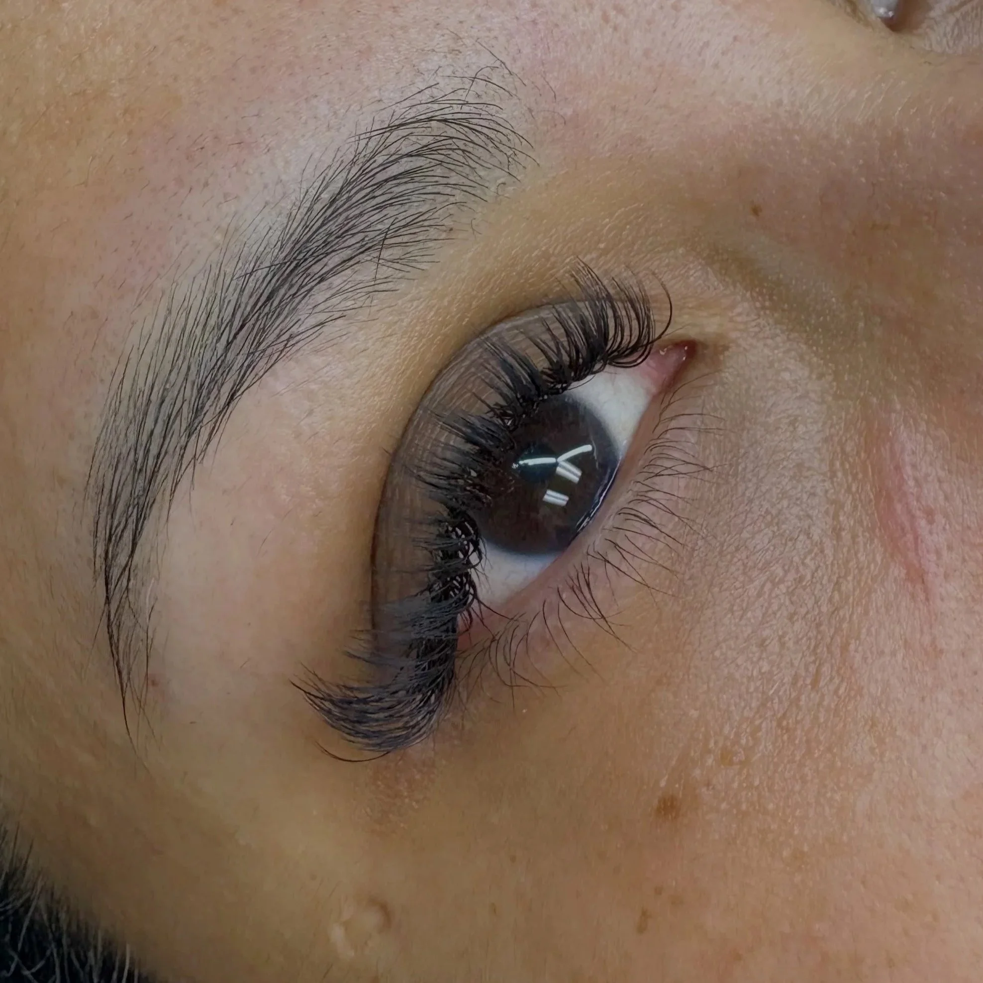 A Hybrid set is the perfect balance between natural and extra volume. It is achieved by using a combination of fans and thick individual extensions. This is the best option for clients seeking more fullness than a Classic set can offer but do not want the fullness of a Volume set.